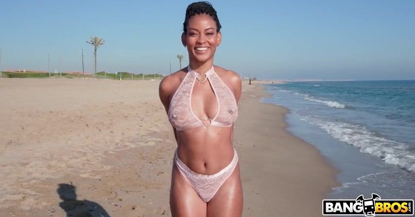 Welcome yet again to public bang! Where we always have the hottest babes showing off their sexy bodies. This time around we have Samantha Cruz, a hot Colombian beauty with the biggest booty you have ever seen. With the great view of the beach, Samantha shows off her nice perfect set of boobs. She shakes them, caresses them, and lets them hang for us to see. She not only has perfect tits, but the biggest ass you have ever seen. We also have Samantha meet Emilio who shows her his huge cock. She gets on her knees and sucks on it. From there, she gets banged in the ass from all positions until Emilio cums all over her face.