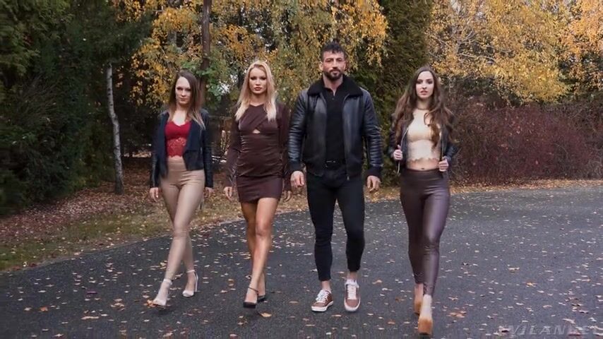 Three beauties and a leading stud -- Cherry Kiss, Amirah Adara, Blue Angel and Maximo Garcia -- appear in sumptuous tease footage. Muscular Max has a trimmed beard; Blue is a pretty, slender brunette; stylish Amirah's tight togs hug her natural curves. Brown-eyed blonde Cherry, the director of this scene, brings her big smile and ebullient demeanor. Cherry binds her costars so they can only watch as she strips naked, revealing real tits, a hot ass and the fur above her bald pussy. Digging a fat dildo into her box, she ejaculates multiple blasts of girl squirt, and then slurps her juice from the toy. She drives the phallus up her freshly lubed asshole. Cherry releases Amirah, peeling down her leather pants for a luxurious rim job. Cherry squirts flumes of girl cum into Amirah's open ass crack, and then licks her clean. Amirah fists Cherry's cunt! Max and Blue break free of their restraints, and the foursome is on: Cherry gives Max an enthusiastic blowjob. Amirah sits on Cherry's face as Max power-fucks Cherry, who masturbates as Max porks her bunghole. Meanwhile, Amirah and Blue fuck each other with toys; they share lesbian Frenching and rimming. Cherry rides big cock and then deepthroats it clean. Anal slamming makes her wail and grunt. Max spunks Cherry's tongue, and she laps up the spillage. This scene is an orgy of dildo drilling, cunnilingus, anus stretching, cocksucking and loud, hyperactive fucking ... all drenched in Cherry's gushing gash geysers!