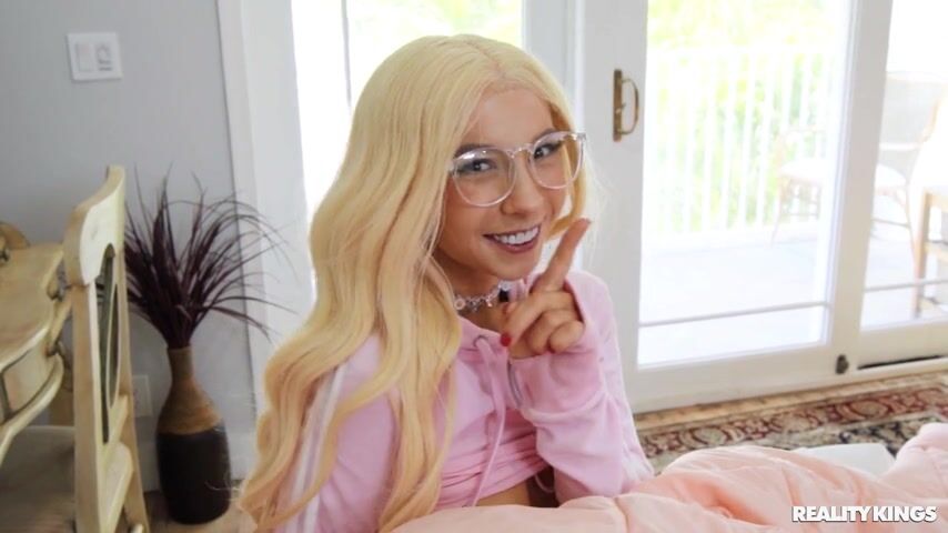 When Mazee overhears his roommate telling her friend on the phone that she can't cum, he stops to watch, especially when she starts humping a pillow! Blonde spinner Kenzie Reeves catches Mazee watching and even recording her, and tells him he needs to help her learn to cum if he doesn't want her to tell his gf. Kenzie gets Mazee nice and hard sucking his cock, then uses it to finally orgasm for the first time! Now that Kenzie knows how to cum, she makes it happen as she humps her pillow while taking Mazee's load on her glasses!