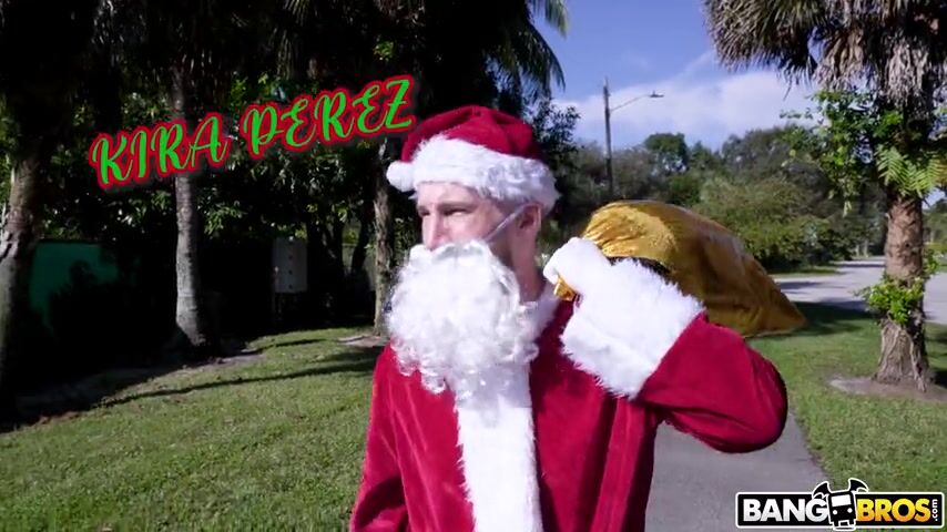 It's Christmas Time and Bang Bros is celebrating with you for a special holiday treat. Santa is making his way around town to deliver presents on Christmas, but when he shows up to Kira's house, he finds out that she doesn't believe in Santa anymore. Santa has to think quick, he thinks of the one thing that EVERY 20 year old girl likes. DICK. Big, long, fat, dick. He takes it out and once she sees it, she's a believer again. She takes him inside and gives him an amazing blowjob before they fuck in multiple positions. He's giving her a real white christmas. He cums all over her face and leaves on another successful Christmas day.