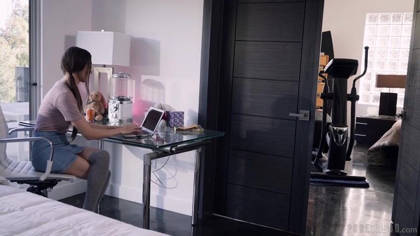 SCENE OPENS on April (Maya Woulfe), who is trying to film a programming tutorial for her online channel. But April's filming is constantly being interrupted by her roommate Mia (Joanna Angel), who is working out loudly in the other room. Finally, April goes to Mia's room to confront her and ask her to be more quiet. But Mia is dismissive and condescending. April grits her teeth, fuming internally at Mia's cruelty.