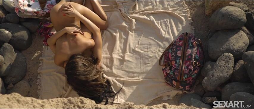 After their daring alfresco encounter in "Survey," cute girlfriends Julia De Lucia and Baby Nicols continue their hike across the sun-drenched vacation island of Tenerife. As Andrej Lupin’s hot lesbian movie "Vamos A La Playa" begins, the girls reach the rocky shore and strip down to their bikinis to enjoy the stunning ocean view. Julia massages tanning oil over her sweetheart’s sexy body, untying her top and caressing her lovely small breasts until they glisten. She bares her own breasts and rubs against Baby as she slides a hand into her bikini panties. Nipple to nipple, they kiss passionately, Baby’s back arching in ecstasy as Julia’s fingers work their magic. Julia gets Baby naked and sinks two fingers into her drenched pussy, frigging her to an even more intense orgasm. Straddling her lover, Baby fondles her gorgeous breasts and peels off her panties, fingering her to one mindblowing climax, and then another.
