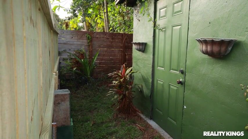 Red-haired goddess Bailey Base is trying to have a chill time in her backyard, bare chest and boobs oily, when she starts suspecting her neighbor Jimmy Michaels is spying on her. The crafty pervert put a trampoline right beside the fence and now he jumps on it to peep on Bailey's silky skin. The foolery can't last too long, though, and soon, the fence itself tips over, revealing Jimmy's dirty scheme. Bailey tries to scold Jimmy but she's too horny about his big bulge to really be angry at him. She's willing to wipe the slate clean, if he lets her shove his cock deep inside her.