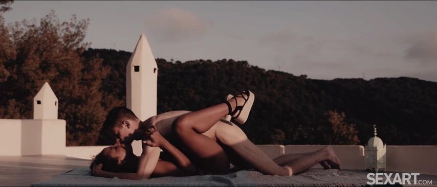 Gorgeous Romy Indy looks stunning in a skimpy bikini, as she chats with Tommy Cabrio on the terrace overlooking a magnificent mountain view. As Andrej Lupin’s erotic movie "Magic Of The Moment" begins, the lovers kiss and touch tenderly. Romy straddles Tommy so he can caress her lovely breasts and finger her pussy as she grinds on him. Taking his rigid cock between her lips, she sucks it avidly, then moves astride him again to ride him in cowgirl. Tommy groans as Romy rocks her lithe hips to stir his cock around inside her while she slides up and down on it, her sexy ass jiggling alluringly. Flipping Romy onto her back, Tommy fucks her in missionary, then switches to spoons. He drives her to an intense orgasm as he fills her with a hot creamy load, by the light of the setting sun.
