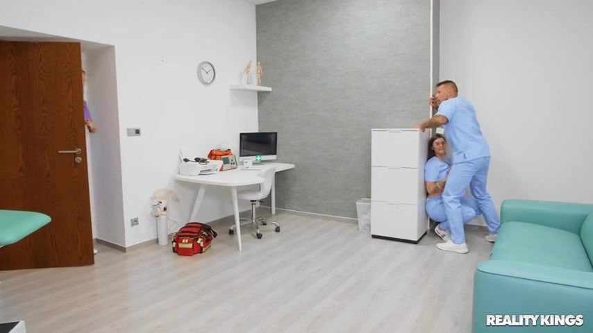 Nurses Taylee Wood and Angelo Godshack have earned a break and they plan to spend it fucking in one of the offices. Getting in their way is the head nurse and a hospital administrator, who are doing a tour of the building and wind up in the same office as them. The head nurse wants to get this tour done as fast as possible, so when she notices Taylee and Angelo are in the middle of some sneaky sex, she tries to get the administrator out the door... but it's never that simple. Can Taylee and Angelo finish all their fucking before getting in trouble?
