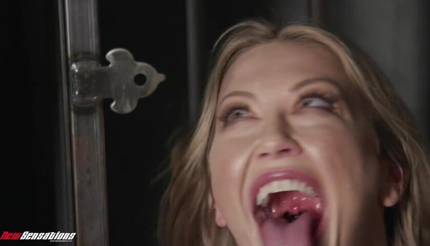 The blonde wild slut in a cage Adira is ready to cum out and play with her master Tommy. As he sets the tone of this fuck session, dripping wet Adira is already squirting pussy juice as Tommy teases her mouth, tits and ass with his leather whip. Now that Adira is out of her cage she is on her knees enjoying her cock face fuck, balls deep. Her hot tight pussy takes a great deep pounding from Tommy's hard cock and slurps up every ounce of his cum exploding onto her face, mouth and perfect tits.