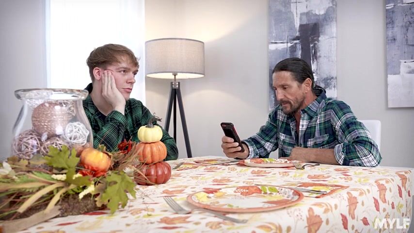 Joshua Lewis and Tommy Gunn patiently wait for Sarah Jessie to get home so that they can enjoy their Thanksgiving meal as a family. But the two men grow more and more hungry by the second and can’t hold out any longer when she comes home from work with a delicious pie. Joshua and Tommy dig in without her, and when she walks in on them eating her pie, she flips out. To make things right, Joshua and Tommy need to fuck Sarah as hard as they can.