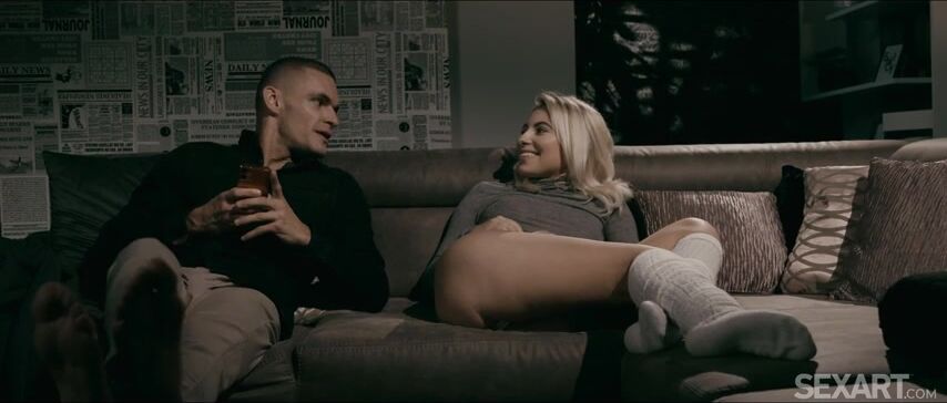 Gorgeous blonde Lilly Bella is hanging out with Maxmilian Dior, chatting and flirting, as Andrej Lupin’s erotic movie "Just Relax" begins. Lilly smiles as Max’s hands roam over her body, caressing her silky thighs and teasing her nipples through her tight top. She straddles him, grinding in his lap as they kiss, then frees his stiff cock from his pants and licks it from root to tip, gazing up at him amorously. Bobbing her head, Lilly gives an enthusiastic blowjob, then peels off her white panties and sits on Max’s face in a sixty-nine, jerking his cock while she gets her pussy eaten. She impales herself on his erection in reverse cowgirl, her sexy bubble butt bouncing as she slides up and down, the intense sensations making her tremble and moan. Spinning around into cowgirl so Max can play with her puffy nipples, Lilly rides vigorously, climaxing again before Max flips them over into missionary. He thrusts between Lilly’s thighs, fucking her to an overwhelming orgasm and cumming over her soaked pussy.