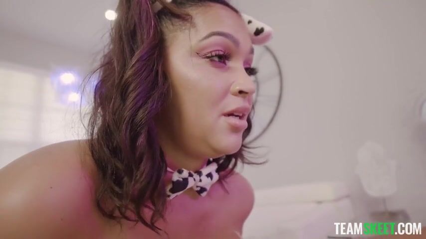 Lucky stud James Angel catches one hell of a show as busty babes Ashlyn Peaks shows off her huge milk-makers. After bathing her with milk, James brings Ashlyn inside to have a hot, bouncy fuck session.