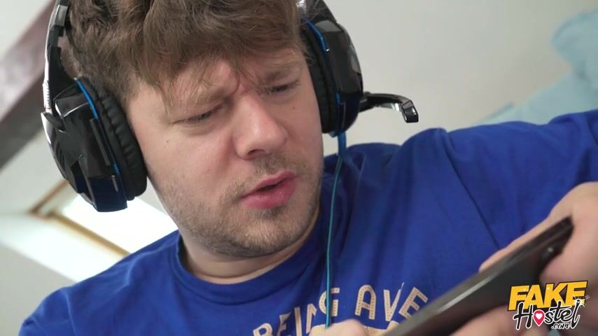 Michael Fly is gaming in his room in the Fake Hostel when sexy brunette Alyson Thor walks up without being noticed. As Michael games, Alyson plays a hilarious prank. Filming Michael, Alyson masturbates her pussy, and gets so horny she covers him with squirt, then slithers away. Michael returns the prank with a hilarious prank of his own! Sneaking up on Alyson while she is applying make up, Michael jerks off until he sprays her back with his cum. Later on, Michael is resting, and Alyson sneaks up again, but this time, she's wearing naughty black lingerie. Getting on top of him, Alyson sucks Michael's cock, then lets him face fuck her as he warms up her butthole. Michael penetrates Alyson's tight ass doggystyle, then she rides his dick for some anal reverse cowgirl. Once he's got his fill of Alyson's tight ass, Michael creampies her.