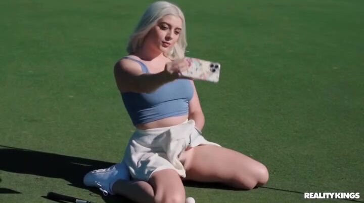 Blonde beauty Gia OhMy set herself a challenge today: see how far she can get away with flashing her big tits and her pretty pussy at the golf course without getting caught! When golfer Jmac spies her taking titty pics and upskirt shots of herself on the green, he offers to help her out, and Gia asks him to take out his dick for a sneaky bj. This lucky guy gets a different kind of hole than he expected as Gia rides his cock on the green. They fuck in the golf cart before heading back to his place for some FORE!play as Jmac eats her ass, then goes balls deep in that pussy!
