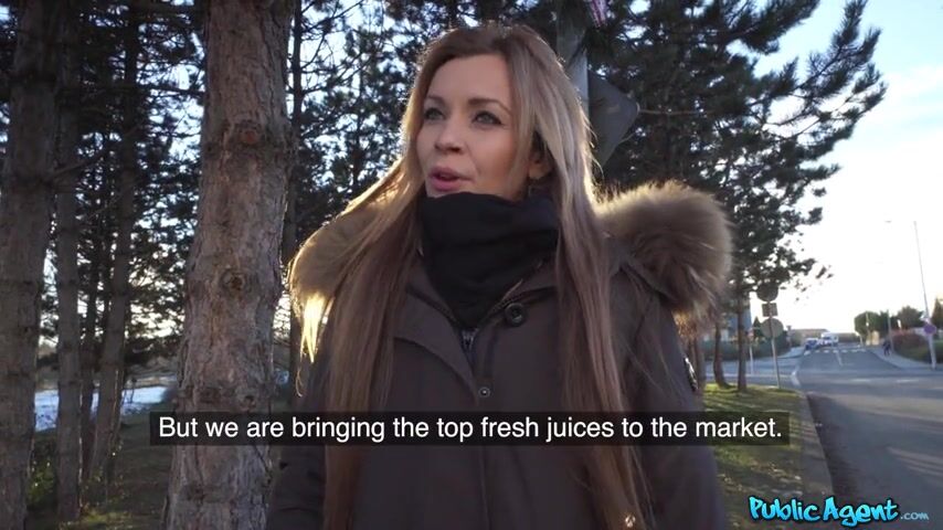 Like any typical weekday, I jerked off into a glass, then scooped it out with a syringe. I hit the street, and found this gorgeous blonde named Tina Princess. I told her I was with an upstart juice company and we were offering free taste tests - and better yet, guessing the flavor properly earned you 100 euro per sip! Tina easily recognized orange and watermelon, and finally, I pulled out the syringe. I squirted the cum into her mouth, and her reaction surprised me: she wanted more sperm, and asked to give me a blowjob so she could get it right from the source. We headed back to my place where she sucked my dick, then she shook her big tits and tattooed booty for me. I fucked Tina's wet pussy doggystyle and then in spoon, then she jerked me off for a second helping of hot load!