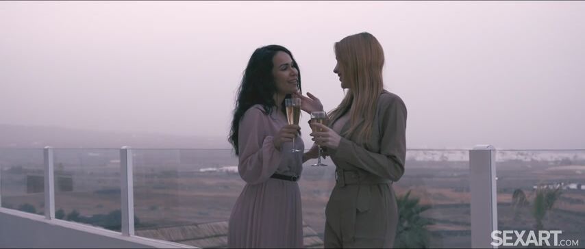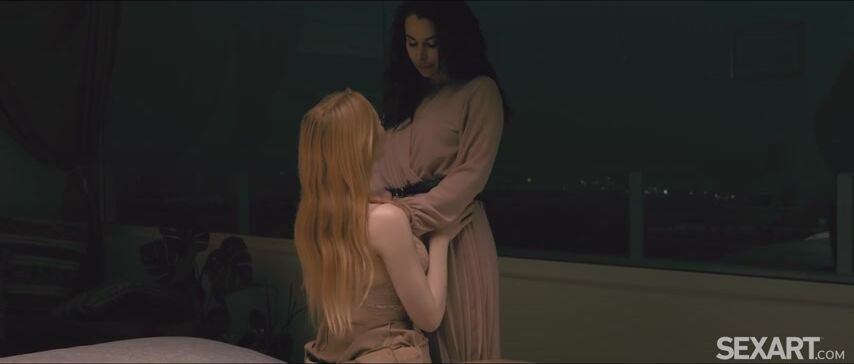 Gorgeous brunette Jessy Jey serenades her sweetheart on the terrace at dusk, as Andrej Lupin’s erotic lesbian movie "Pure Love" begins. Sexy redhead Scarlett Jones is charmed by Jessy’s singing, and even more by her tender kisses. In the bedroom, their embrace becomes heated as Jessy starts to undress Scarlett, caressing her feet and freeing her big breasts from their lace confines. She slides a hand into Scarlett’s panties to stroke her pussy, then peels them off and moves between her thighs to lick and finger her. Scarlett gasps with arousal as Jessy strokes her fluffy red bush and laps at her wet folds. Soon Jessy is naked on the bed with her lover, thrusting her fingers deep to drive her to an intense orgasm. Scarlett kisses her way down Jessy’s voluptuous body, lavishing attention on her curvy breasts and frigging her drenched pussy to a frantic climax, and then another. Holding each other tight, the amorous girlfriends kiss through the afterglow.
