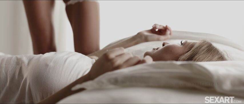 The sexual chemistry between gorgeous blondes Stella Cardo and Venera is powerful. As Andrej Lupin’s erotic lesbian movie "Presence" begins, Venera binds her sweetheart’s wrists with white silk restraints, then spreads her long legs and kneels between them, kissing her teasingly. She looks sensational in sexy lingerie as she straddles Stella and squeezes her big breasts, sucking her nipples to make her squirm and gasp. Pulling down Stella’s silk tap pants, Venera pins her legs wide and licks her shaved pussy skilfully, fingerbangs her to a wild orgasm, then immediately resumes licking her, keeping her in a deliriously blissful state. When Venera unties her wrists, Stella is eager to repay the favor, fingering her lover’s pussy and fondling her lovely breasts. Venera moves astride her in a passionate sixty-nine, grinding on her probing tongue while licking her voraciously. The horny temptress lies back, and Stella focuses all her attention on driving her to the edge of orgasm. They entwine their legs in scissors, mashing their wet pussies together, breasts bouncing as they climax in harmony.