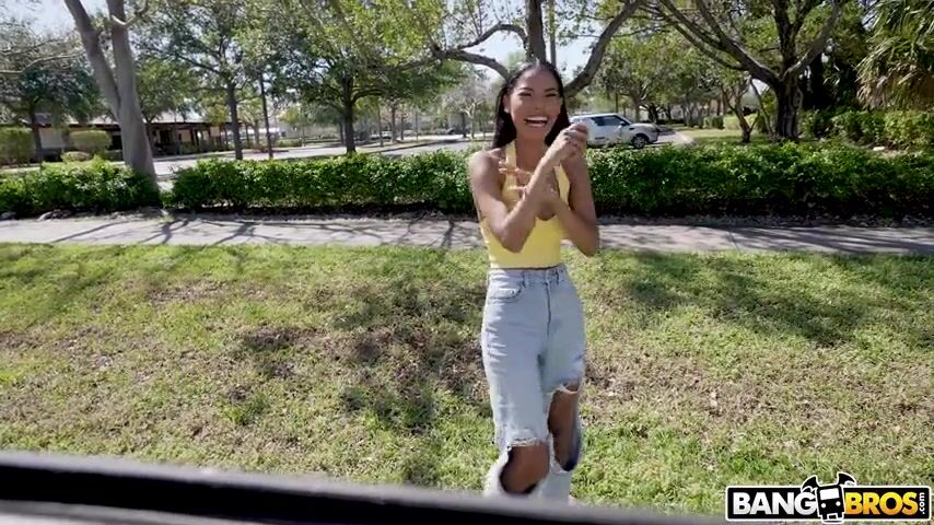 In this update, we pick up Eden West. She's in town for spring break. We can't help ourselves and ask her to flash her tits. She agrees after we flash the cash. She steps inside the van to get naked. She has a nice tight slim body with the perkiest tits. Jovan gets sprung when she's all oiled up. She takes his large girthy black cock in he mouth. She worships his juicy cock with the tight pussy. She milks the dick with her greedy pussy. and she gets a nice load all over her face.