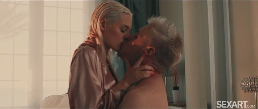 Hot blonde Christy White is on the balcony of her vacation villa, as Andrej Lupin’s erotic movie "Closeness Of Hearts" begins. She’s joined by her lover, Nek Sinner, who embraces her as they enjoy the ocean view together. They move to the bedroom, where Christy straddles her man and grinds on him while they kiss passionately. She unties her silk robe, and he caresses her sexy small breasts, sucking her stiff nipples, before she gets him naked too and impales herself on his rigid dick. Gasping with pleasure, she slides up and down energetically as he thrusts up to meet her, giving her a powerful orgasm. Nek lifts Christy and flips her onto her back, licking her pussy, then penetrating her in spoons. He fucks her steadily, her fingers on her clit to intensify the sensations; then they move into doggy, slamming together until Christy climaxes again and Nek fills her with hot cum that trickles out of her soaked pussy as they cuddle adoringly.