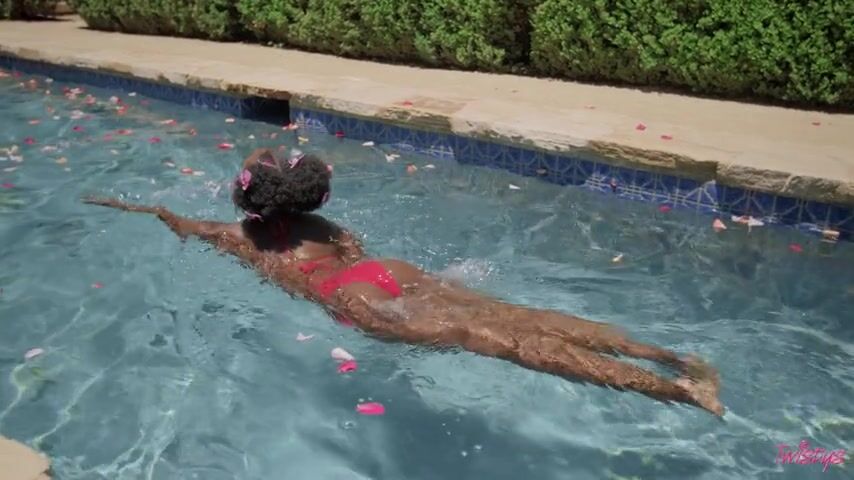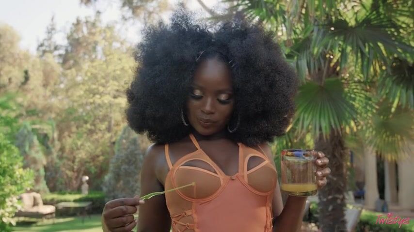 It's time for a bountiful harvest with your beauteous September Twistys Treat of the Month, Elsie! Join her in a paradisiacal garden as she takes a dip in a pool filled with rose petals, stripping out of her pink bikini to swim naked and twerk her booty in the water. Next, Elsie strolls through a sunny orange grove, plucking ripe fruit from the tree and teasing you as she takes off her bright lingerie to let the fresh juice run down her skin. Finally, Elsie does a sensual dance with a feathered fan and a shimmery shawl, wearing nothing but sparkling jewelry on her lush form. She shows you the meaning of delight as she uses a toy on her clit and fingers her pussy until she orgasms!