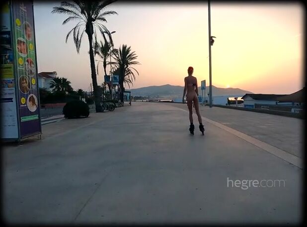A SKINNY SPORTY GIRL flowing down the beach promenade on rollerblades is not an everyday sight. Not even in Sitges, Spain. And to a passionate exhibitionist like RIANA it was Christmas Day on a hot summer evening.