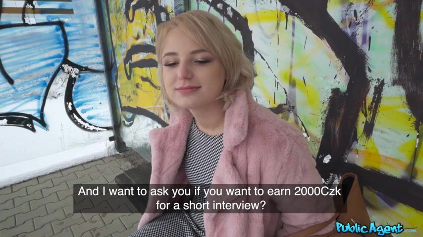 I was out walking the streets of Prague when I came across this cute blonde named Vaness Queen waiting at the bus stop. I wanted to find out how shy Vaness was, so I offered her 200 CZH to show me her boobs. She was a little nervous because we were out in public, but eventually she flashed me her big cleavage! Her tits looked amazing, and after giving her more cash for sexual favours, Vaness agreed to follow me to my secret basement, where she gave me a long, deepthroat blowjob. Having my rock-hard dick in her mouth was making her horny, so Vaness turned around and let me fuck her doggystyle. Afterwards, I put the busty babe on the table and filled her tight pussy with my cock in missionary. She sucked me off some more, then I came into her pretty mouth!