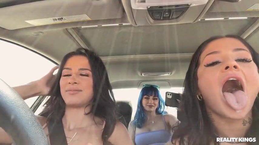 Jewelz Blu, Kylie Rocket, and Ryan Reid are always finding new ways to cause trouble on their road trip, like heading into the woods to take off their tops and shake their tits! But when they get a flat tire on a lonely stretch of road with no cell reception, it seems like they might not find any cocks to suck today. Luckily, these hotties take out their boobs to get Air Thugger and Lawson Jones to pull over, and they're scheming to get everything they need from these guys: their flat fixed and their pussies filled!