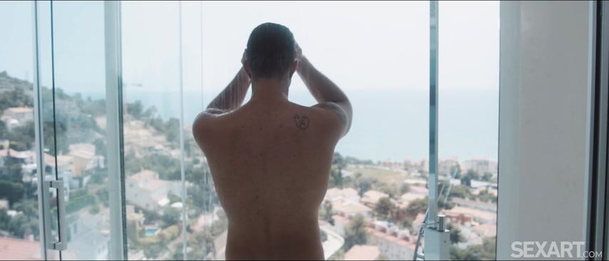 Cute blonde Rika Fane is watching Jimmy Bud take a shower, as Andrej Lupin’s erotic movie "Right Here" begins. She joins him under the cascading water, her white shirt immediately turning transparent and clinging to her sexy body. Jimmy caresses Rika’s lovely breasts and strokes her pussy inside her drenched panties before peeling them off. She presses against the glass wall as he takes her from behind, driving into her with vigorous thrusts until she’s overwhelmed with arousal, then pausing to kiss her tenderly. Jimmy lifts Rika and impales her so she can bounce on his rigid cock; then kneels and licks her pussy, giving her a powerful orgasm. She straddles him in cowgirl on the tiled floor, riding his thick shaft to one intense climax after another and then jerking him off until his cum fountains out, ready to shower all over again...