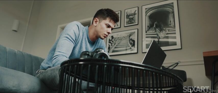 Photographer Tommy Cabrio is editing on his laptop when he spots his girlfriend Sofi Otis dressed in nothing but skimpy lingerie. As part one of Andrej Lupin’s erotic series "Viewfinder" begins, mischievous Tommy grabs his camera and starts snapping sneaky shots. The cute blonde is annoyed at first, but Tommy wins her over with his flirty kisses. Unhooking Sofi’s bra, Tommy caresses her beautiful breasts as they embrace passionately. They are soon both naked and Sofi straddles Tommy on the sofa, sinking down on his stiff cock in cowgirl. She rides him sensuously, sliding up and down his thick shaft until an intense orgasm makes her quiver and moan; Tommy flips her onto her back and eats her shaved pussy avidly, then plows into her in missionary, driving her to another powerful climax as he cums inside her. Then he grabs his camera again, laughing as he tries to snap some shots of his naked sweetheart.