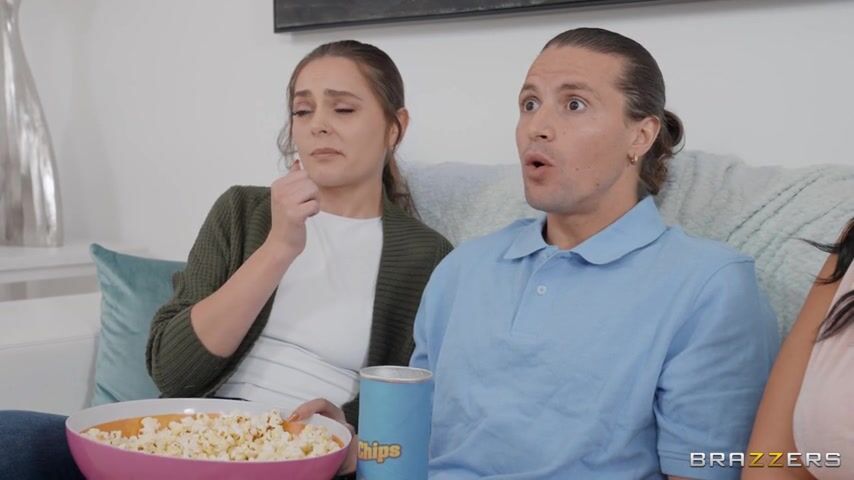 Jay Romero is watching a movie with his girlfriend and their mutual friend Sofi Ryan. While the girls watch the movie, Jay is preparing a little prank… sticking his big dick through his bottomless can of chips. While his girlfriend is distracted, Jay reveals his dick to Sofi, who gladly gives him a handjob until cum flies out of the can. Now Jay and Sofi both just want to fuck and start having sneaky sex in the kitchen and on the couch, but how long can the keep Jay’s girlfriend from figuring things out?