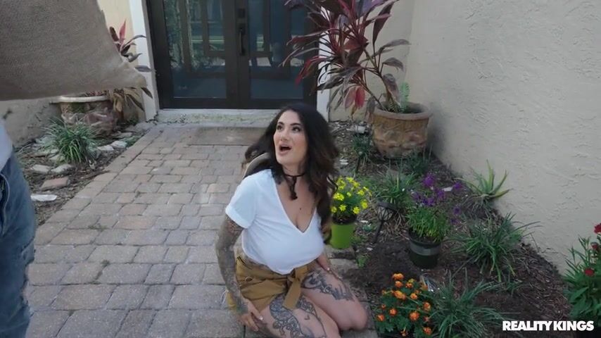 It's easy to be a good neighbor when you live next door to a MILF as hot as tattooed brunette Arabelle Raphael. Jmac brings over her package... and she's interested in his package! The sexy gardener with the huge naturals invites him inside for some water, and soon she and Jmac are getting wet and stripping down for a sloppy blowjob and tittyfuck. Arabelle goes wild for that big dick as she rides it and deepthroats it before Jmac piledrives her pussy and plants his seed all over her massive tits.
