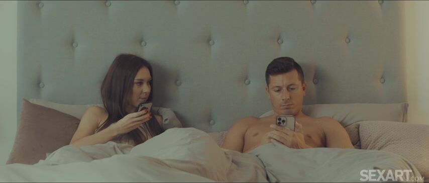 Sexy brunette Viks Angel is in bed with Nick Ross, both of them focused on their phones, as Andrej Lupin’s erotic movie "Perceive Me" begins. Viks makes the first move towards intimacy, stroking Nick’s chest and then his cock under the covers. He keeps up the pretence of indifference, but smiles when she straddles him and tosses his phone aside. Nick caresses his sweetheart’s gorgeous breasts as she gets naked and impales herself on his erection in cowgirl. She slides up and down sensuously, then picks up the pace until she’s overwhelmed by the blissful sensations. Nick flips Viks onto her back and eats her shaved pussy, making her orgasm again before penetrating her in missionary and fucking her with vigorous thrusts. Viks trembles through peak after peak of pleasure, then sucks her sweetness from Nick’s cock. She moves astride him again, riding to a final climax as he fills her with a hot load of cum that pours out as they uncouple. They kiss tenderly, their intimate connection renewed.