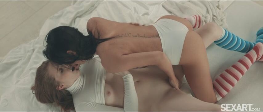 Beautiful lovers Abela Sott and Lilly Bella are on the bed, kissing passionately, as Andrej Lupin’s erotic lesbian movie "Tender Dream" begins. Their hands roam in an avid embrace, undressing each other and caressing soft skin. Lilly sucks Abela’s stiff nipples, making her giggle and gasp, then slides a hand into her white panties to stroke her pussy. Kissing a trail down between the sexy blonde’s thighs, Lilly peels off her underwear and licks her voraciously, adding two fingers in her tight slot to drive her to an intense orgasm. Now Lilly strips down to her striped socks and straddles Abela’s pretty face, grinding to a powerful climax. Abela sucks Lilly’s pierced nipples and fingerbangs her before they move into scissors, mashing their soaked pussies together until they both orgasm again.