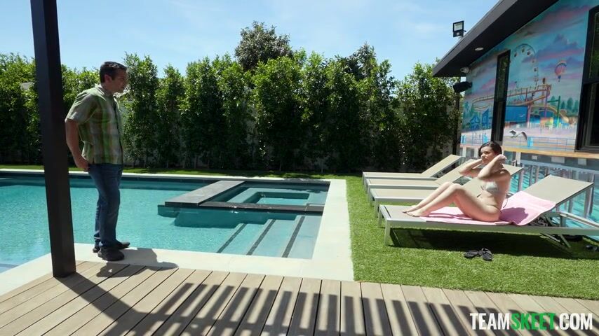 Donnie is heading to an important meeting when he discovers that his kids’ babysitter Dharma has broken into his house. The naughty nanny loves the family’s pool, so she went into the house to sunbathe. Donnie rushes to his house to kick Dharma out, but she pushes him into the pool and starts fooling around with him. With her cock-sukcing skills and luscious pussy, the mischievous babysitter convinces her boss to keep the incident a secret.
