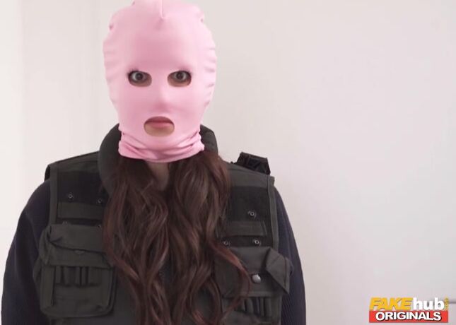 Bespectacled stud Liam Salvatore is relaxing in his room when he is suddenly confronted by a masked woman (Jennifer Mendez) carrying a weapon! Not wanting Liam to call the authorities, the hot brunette flashes her humongous fake titties and big, thong-clad booty before eating up his dick and deepthroating it till she gags. Once Jennifer has finished sucking him off, the dark-haired buff puts her on all fours and tongues her tight snatch before banging it from behind doggystyle, and then the busty sex bomb straddles Liam’s lap and rides him cowgirl! Afterwards, the horny pair do some sexy 69ing and have a passionate side fuck on the bed, and then Jennifer bounces her juicy bubble butt on Liam’s long, thick dick again before spreading her legs and taking a missionary fuck. The inked-up slut’s pussy feels so good that it’s soon time for Liam to cum, and he pulls out just in time to spunk all over Jennifer’s beautiful face!