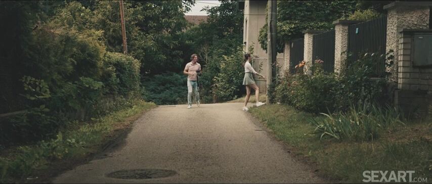 Stunning brunette Stacy Cruz has fun in the suburbs with Ricky, as Andrej Lupin’s erotic movie "Urbex" – short for "urban exploring" – begins. Ricky films his sweetheart strolling along the road in a thigh-skimming pleated skirt; the daring beauty leads him into a derelict building where she poses playfully, exposing her gorgeous big breasts. Pushing Ricky against the rough wall, Stacy kisses him passionately, guiding his hand to her pussy to feel how excited she is. She takes off her panties and stuffs them in his pocket, then climbs a ladder to the next floor, getting distracted as Ricky takes advantage of the opportunity to start licking her pussy. Upstairs, Stacy frees Ricky’s thick cock from his jeans and kneels to suck it, then turns around and impales herself on it in a standing doggy position. Her breasts jiggle as she slides up and down, riding sensuously, then bends over so Ricky can take control and thrust into her forcefully, driving her to an intense orgasm. Stacy rubs her clit as Ricky fucks her to another climax, then flips onto her back so he can drill her missionary style. Legs up on his shoulders, she enjoys peak after peak of pleasure before Ricky anoints her quivering body with his cum. She mops it up with her panties, discarding them as they rush away, still giggling naughtily.