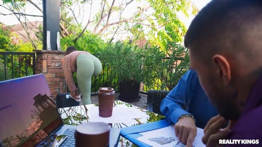Rauls Bud's business meeting gets derailed when his partner's hot stepdaughter, Alexis Wilson, starts flirting with him, bending over to give him a better view of her ass in her skin-tight leggings and even flashing her pretty boobs! As soon as her stepdad goes inside, Alexis pulls out Rauls's big dick and sucks it, and she follows him inside to get fucked in the bathroom.