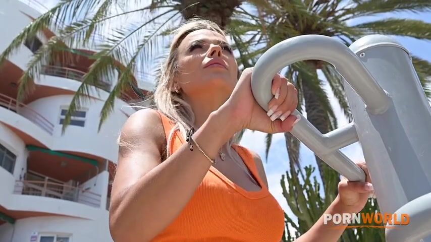 When stunning blonde Shalina Devine arrives at the outdoor public gym, she notices a guy climbing onto the exercise bike and approaches him. After introducing herself as a personal trainer, Shalina invites him to the beach to workout with her. They make their way and while David looks around at the sights, slutty Shalina places a blanket down on the ground and masturbates, fingering her juicy pussy! When David arrives, he is surprised to find Shalina completely naked and even more shocked when she asks him to lick her pussy. David eagerly joins her and afterwards, Shalina sucks on his cock, taking it deep into her throat! They fuck right there outside at the viewpoint, with Shalina offering both her pussy and ass for pounding!