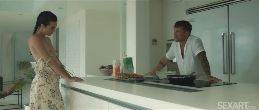 Sexy Spanish brunette Sandralyd waits patiently while Liam Salvatore makes breakfast for her. As Andrej Lupin’s erotic movie "Love Ingredient" begins, Sandralyd distracts her lover with a tender kiss; he returns to making the pancakes, but abandons them when Sandralyd unbuttons her summer dress, exposing her perky breasts. They’re soon both naked, Liam’s rigid cock wrapped in Sandralyd’s soft hand as he caresses her passionately. Lifting Sandralyd onto the kitchen counter, Liam licks her shaved pussy to a breathless orgasm; she reciprocates just as eagerly, kneeling to suck his long cock. Sandralyd bends over the table and Liam fucks her doggy style, their bodies slamming together until she trembles through another wild climax. She perches on the glass table and he penetrates her in a seated missionary position so they can kiss as he thrusts vigorously, her fingers strumming her clit to intensify her orgasm as he fills her with hot cum. It’s the perfect way to work up an appetite.