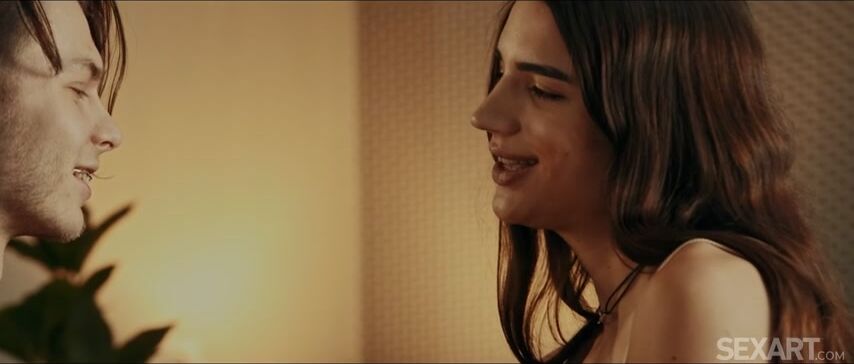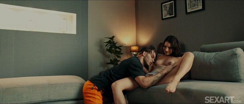 Sexy brunette Candie Luciani makes flirtatious eye contact with Tommy Gold, as Andrej Lupin’s erotic movie "Carnal Whispers" begins. The lovers kiss tenderly and Candie guides Tommy’s hand between her spread thighs to stroke her through her panties. He fondles her breasts, sucking her puffy nipples, then licks the intricate folds of her pussy, making her quiver and moan. Candie sucks Tommy’s long cock avidly, her cheeks hollowing as she bobs her head to swallow it inch by inch. Taking her in his arms, Tommy fingerbangs her to a breathless orgasm, then bends her over the back of the sofa and thrusts into her, doggy style. He fucks her to peak after peak of pleasure before they switch to cowgirl, Candie bouncing up and down on Tommy’s thick shaft energetically. He lifts her, still impaled on his cock, and flips her onto her back, plowing into her in missionary with her legs hooked over his shoulders so he can drive deep. Candie orgasms again and again as Tommy jackhammers into her, triggering him to fill her slick pussy with hot cum.