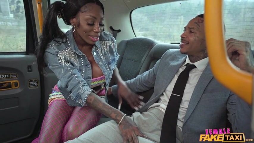 I picked up this cute guy in the Fake Taxi today who needed a lift into the centre of Prague. After setting off, he told me he was meeting someone for a date. We arrived a little early, so I parked up and joined the tattooed stud in the back of the cab. I noticed his bulging cock through his trousers, and I was also feeling horny, so I treated him to a sloppy, deepthroat blowjob! After gagging on his swollen dick, I sat my pierced pussy down on it, riding it cowgirl while he played with my huge fake titties. Afterwards, I spread my stocking-clad legs and invited the well-hung hunk to bang me in missionary before hopping back on top to bounce my bubble butt on his dick some more! Next, I put myself on all fours to take a doggystyle pounding from behind, and then he covered me in a hot, sticky facial!