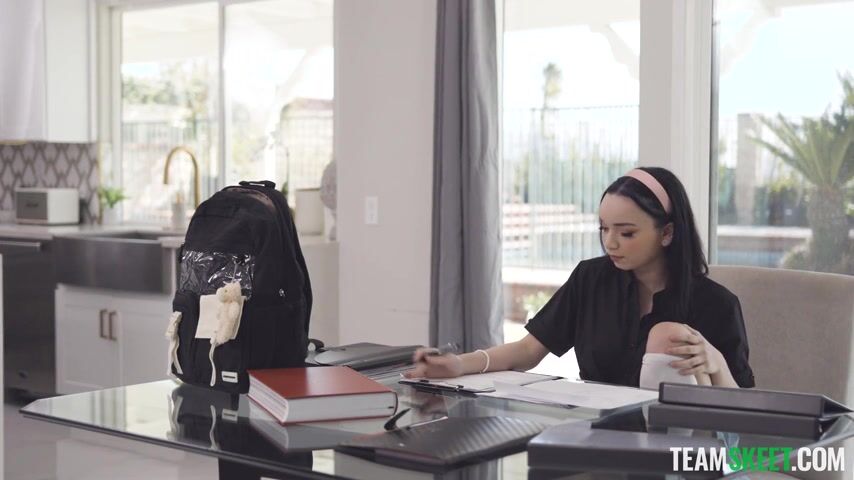 Mischievous Selina loves getting in trouble. This time, her poor academic performance plus her desire to be chased around the house will serve as an excuse to seduce Will, her hunky tutor. The petite brat acts all snappy around him to get his undivided attention, talking back to him until Will gets mad and decides to spank her. As soon as the tutor feels Selina’s juicy ass in his hand, things go out of control and he starts fingering her little pussy. Selina responds by eating his big cock. She always gets what she wants, especially if it involves getting her cunt stuffed with meat.