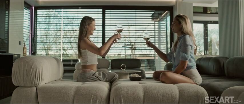 Cute girlfriends Alexis Crystal and Lee Anne are enjoying drinks, snacks and gossip, as Andrej Lupin’s erotic lesbian movie "Sensual Symphony" begins. They chat animatedly, their conversation taking an increasingly sexual turn until they are kissing passionately and caressing each other’s beautiful breasts. Alexis peels off Lee Anne’s panties and sucks her nipples, then nuzzles her soft bush while licking her pussy. Strumming her clit and sliding fingers into her wet heat, Alexis gives Lee Anne an intense orgasm. She reciprocates eagerly, frigging and eating her friend’s pussy to a powerful climax. Lee Anne sits on Alexis’ face, her sexy ass jiggling as she rides to another breathless orgasm; spinning around into a sixty-nine, she spreads Alexis’ juicy lips with her tongue and diddles her vigorously, both of them going wild with pleasure. Entwining their legs, they mash their wet pussies together in scissors until they climax in a crescendo of gasps and moans.