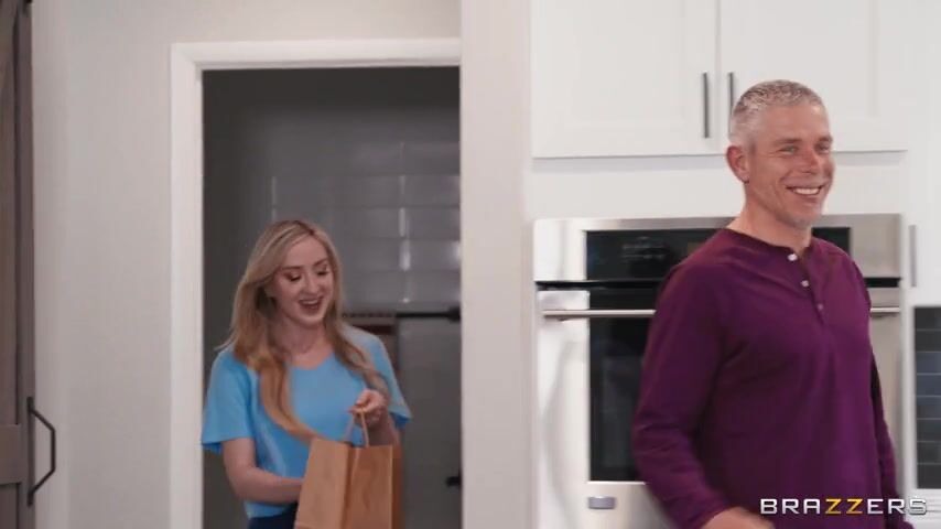 Kayley Gunner and Dan Dangler are fucking around in the kitchen when Kayley’s bitchy roomie and her horndog boyfriend, Mick Blue, arrive home. Kayley makes Dan hide, since her roomie is not a fan. Turns out, Kayley’s roomie has arranged a surprise pastry tasting menu for them, as a warmup before her culinary school exams. Dan’s a brat and when she doesn’t get invited to taste pastries, she tastes Kayley’s pussy instead, forcing Kayley to stop Dan’s antics and allow her to come out of hiding. This does not impress the roomie, and Dan is told to get out. Dan seeks revenge and sucks Mick’s dick at the table right under Kayley’s feet. When Kayley discovers Dan, she pulls her to the bedroom to teach her a lesson. Pretty soon, Mick joins the party and gets an extra special sampling of double pussy.